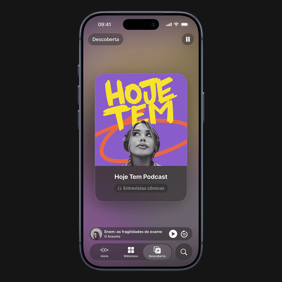 O primeiro player de podcasts a integrar a Apple Intelligence em funcionalidades que aprimoram a experiência.